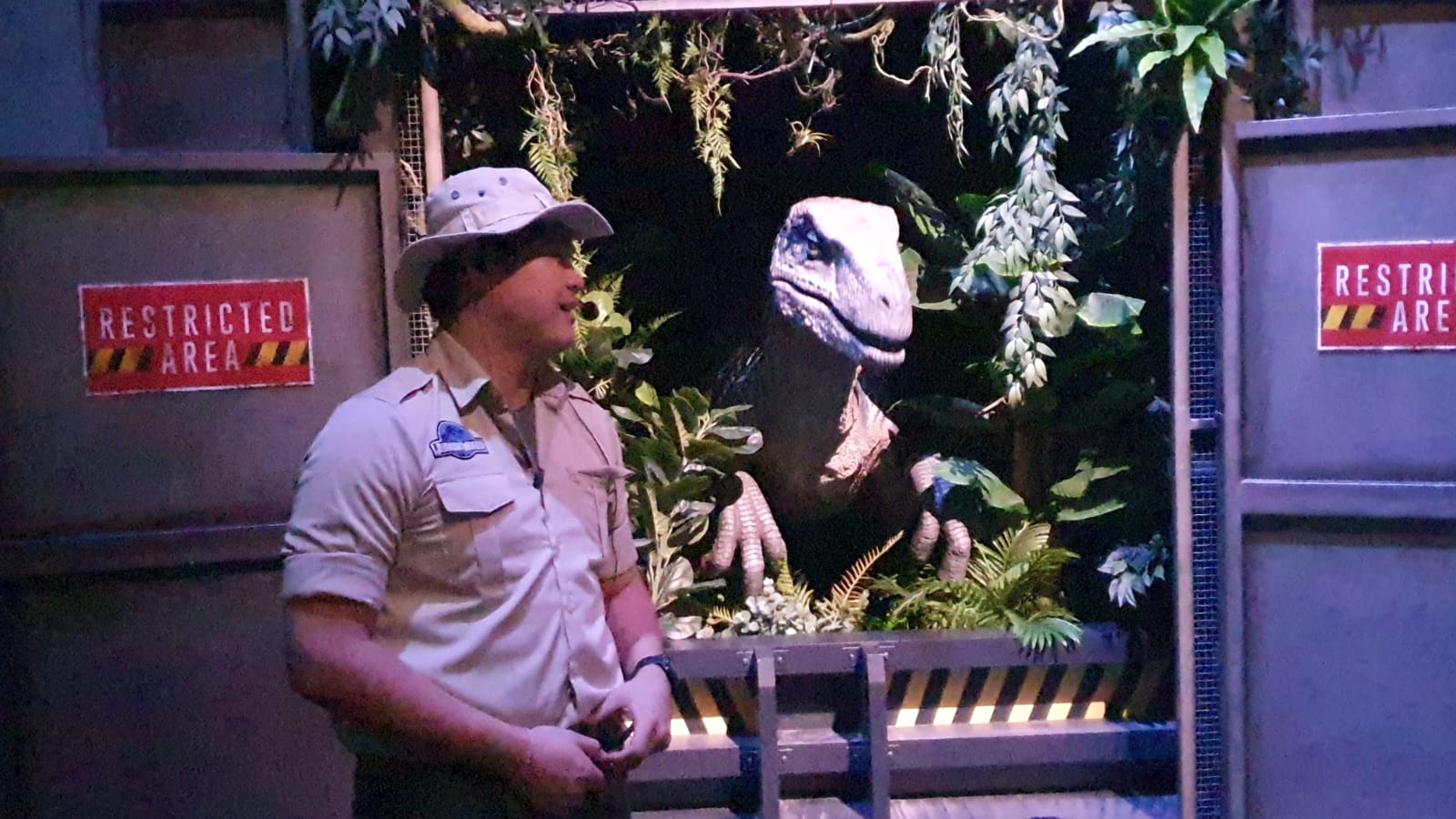 Por cierto, el restaurante de Jurassic World, tiene su entrada principal, justo antes de entrar a la experiencia, que esta muy chula, simulando las famosas vallas de retención del Rex de la peli y con otras sorpresas que mejor las vivas tú mismo cuando vayas😎.